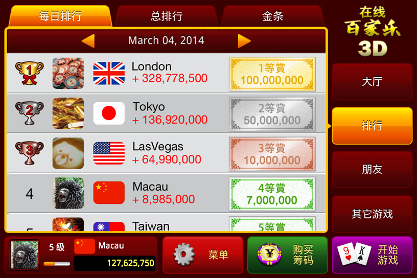 每日排行的第一到第十名的玩家可获得相应的奖励。