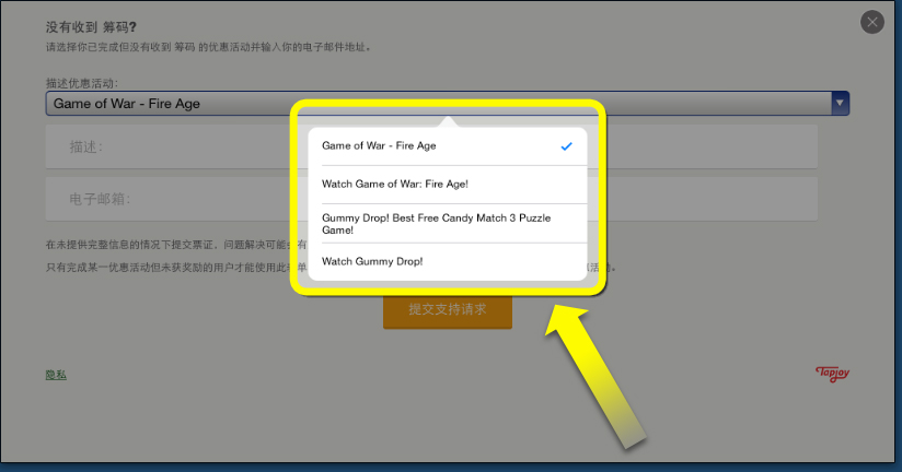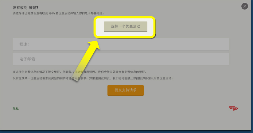 如果您完成了TapJoy提供的内容后,未能获得筹码,则需要您直接向TapJoy提交申诉。提交申诉的详细步骤,如下所示: