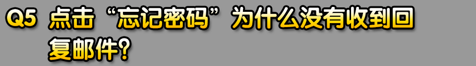这有可能是您的邮箱与本游戏的邮箱服务器间,产生了未知错误而导致的。发送这种情况时,您可以直接联系我们,我们会将初始化的密码发送给您。特别声明,发送邮件时,请务必使用被您登录为游戏账户的邮箱。如果使用其他邮箱发送,我们将无法为您进行密码初始化处理。