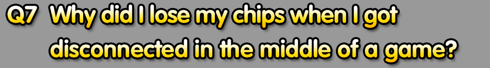 Please be aware that chips will never just disappear from your account. In case of a connection loss while you are in the middle of a game, two instances may occur: